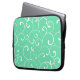 Un design moderne fantaisiste avec un motif blanc contre un arrière - plan d'aqua. Cette pochette d'ordinateur est un moyen attrayant de protéger votre ordinateur portable ou votre tablette.