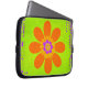 Une fleur vibrante qui rappelle les années 70. Les couleurs sont le jaune vert, le violet, l'orange, le jaune et le rose.