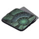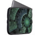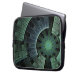 Manche pour ordinateur portable avec "Cosmic Pod", art abstrait, copyright © 2008, Susan Wallace. motif circulaire labyrinthique dans les tons verts et bleus, mêlant des formes géométriques dans un design futuriste complexe.