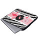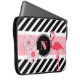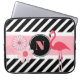 Une jolie couverture/coque pour ordinateur portable que tous les amateurs de Flamant rose aimeront. Gras et modernes rayures noir & blanc avec accents roses, fleurs et un Flamant rose. Ajouter un monogramme pour la personnalisation.
