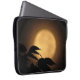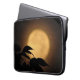 C'est automne, et une pleine lune jaune d'or lumineuse s'est levée derrière les silhouettes noires du feuille soufflant dans la brise sur cette douille dramatique d'ordinateur portable de photographie de beaux-arts. L'arrière - plan est illuminé dans les tons de l'orange, de l'or et du brun pour créer un motif abstrait dans un motif asiatique.