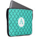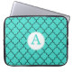 Une élégante motif de couleur turquoise et noire orne cette élégante pochette pour ordinateur portable. Personnalisez cette pochette d'ordinateur portable en changeant la lettre monogramme en fonction de vos besoins. Le design est issu de l'art original.