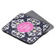 Un cadeau qui peut être personnalisé avec votre monogramme dans le cercle rose au centre. Arrière - plan est bleu marine et blanc motif ikat.