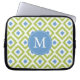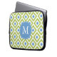 Protection Pour Ordinateur Portable Monogrammed Blue Green Diamond Ikat Pattern