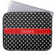 Protection Pour Ordinateur Portable Pois noirs et blancs Nom rouge Monogramme