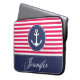 Protection Pour Ordinateur Portable Preppy Red Navy Ancre nautique Nom personnalisé