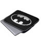 Le classique Batman Logo dans le style graphique métallique gris.