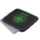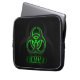 Cette pochette d'ordinateur portable noir est dotée du symbole international pour le danger biologique : le trefoil bio ! Ce logo brille d'une mystérieuse aura verte, tout comme le mot "BIOHAZARD" en dessous. L'arrière - plan présente un format plus large du symbole de danger biologique en gris foncé.