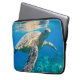 Photo sous-marine d'une tortue de mer nageant dans une eau cristalline juste en dessous de la surface.