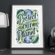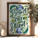 Faites la promotion de la sensibilisation à l'environnement avec cette œuvre d'art murale percutante "Protégez notre planète". Le design présente un lettrage manuscrit gras entouré de feuilles vertes luxuriantes et une belle représentation de la Terre, ce qui la rend parfaite pour inspirer un sentiment de responsabilité envers notre planète. Idéal pour la décoration intérieure, les salles de classe ou comme un cadeau attentionné pour les personnes éco-responsables, cette œuvre d'art sert de rappel puissant pour prendre soin et protéger notre environnement.