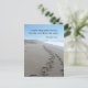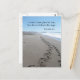 Ces cartes postales montrent deux jeux d'empreintes qui font un chemin à travers le sable sur une plage en Californie. Il montre le verset de la Bible Proverbes 16:9 qui dit : "Le coeur d'un homme planifie son chemin, mais le Seigneur dirige ses pas."