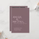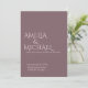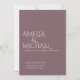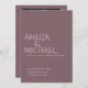 Faire-part de mariage minimaliste moderne et élégant. Design de typographie simple et chic avec style raffiné et tendance. Noms, date et détails personnalisables pour une cérémonie moderne intemporelle. Papeterie romantique parfaite pour les couples à la recherche d'un mariage unique classe invite dans le violet prune et rose rousse.