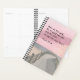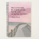 Christian planner dépeint une aquarelle simple et moderne avec ciel rose sur un océan gris, promenade de plage. Il comporte une Bible Verse Psaume encourageante 27:14, "Attendez sur le Seigneur; Soyez de bon courage, Et Il renforcera votre coeur."
