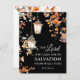 Carte de voeux plat avec citation inspirante, avec un design d'aquarelle d'automne avec des feuilles de couleur automne entourant des lampes suspendues sur un arrière - plan noir. Il présente une Bible Verse Psaume encourageante 27:1, "Le Seigneur est ma lumière et mon salut : qui craindrai-je?" La salutation, la prière peut être personnalisée ou supprimé pour un message manuscrit.
