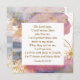 Carte de voeux plate avec une citation exaltante scripture représente un arrière - plan abstrait moderne rose et bleu avec des accents d'or. Il présente un puissant et encourageant Verset biblique du Psaume 91:14-15, Le Seigneur dit, "Je secourrai ceux qui m'aiment. Je protégerai ceux qui ont confiance en mon nom. Quand ils m'invoqueront, je répondrai ; je serai avec eux en difficulté. Je les secourrai et les honorerai." La salutation, la prière peut être personnalisée ou supprimé pour un message manuscrit.