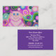 Super bébé ! Un chat rayé rose avec des whiskers tourbillonnants et un arrière - plan psychédélique à motif arc-en-ciel. Modèle de carte de visite avec un design personnalisable rose, jaune, bleu, vert et violet pour vous permettre de personnaliser avec votre propre texte, images et idées. Image créée à partir d'un dessin original numériquement crayon de couleur améliorée.