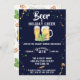 Verre à bière peint, tasse, houblon et blé sur l'arrière - plan bleu minuit, Holiday Party Invitation, avec soutien motif de style pub.