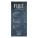 Elégante liste de prix en bleu foncé avec vos contacts professionnels, des marques d'or, des calligraphies manuscrites blanches ainsi qu'un menu de service avec trois sections.