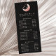 Céleste Rose Gold Crescent Moon Prix Rack Card. Cet élégant design d'entreprise moderne et tendance dispose d'un logo lune et étoiles sur un arrière - plan noir solide.Personnalisez ce design personnalisé avec vos propres détails.