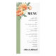Branche avec rose pêche fleurs sauge mariage carte de menu BUDGET. Cette carte de menu mariage élégante dispose d'une branche avec des fleurs roses de pêche délicates. Placés dans le coin supérieur gauche, les roses de pêche ajoutent une touche douce et romantique au design, tandis que la bordure verte sage sur le côté gauche respire le raffinement et le charme terreux. Le dos de la carte complète le thème général avec une teinte verte à la sauge apaisante, liant l'ensemble de façon transparente. La couverture a été conçue à l'aide de certains actifs de Freepik.com