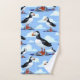 Oiseau marin mignon du Puffin Atlantique, avec son plumage noir et blanc typique et son bec aux couleurs vives, debout sur un rocher, dans l'océan. Illustration vectorielle originale Copyright BluedarkArt TheChameleonArt.