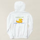 Simple mais si éloquent, ce petit canard en caoutchouc jaune flotte le long des vagues bleues et vous rappelle que quoi qu'il arrive, "FLOAT ON". L'impression plus grande est à l'arrière. Une version plus petite est à l'avant.