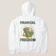 Stack warmth and success. The “Financial Freedom” zipper hoodie showcases a bold sketch of bills reclining on a beach chair, surrounded by sunburst rays and framed by empowering typography. Perfect for entrepreneurs, investors, and freedom-seekers.