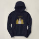 Profitez de ce "I Love Christmas", sweat - shirt à capuche de femmes, tout en noir avec des lettres d'or métallique disant "I Love Christmas" et bonhomme de neige en or et deux arbres de Noël.