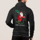 Joyeux Ski de Noël Père Noël Hiver Sweat - shirt à capuche personnalisé présente une illustration du Père Noël qui descend une colline avec votre nom personnalisé sur le devant. Au verso est le même design avec le texte "Joyeux Noël". Personnalisez en modifiant le texte dans les zones de texte fournies. Conçu par ©Evco Holidays www.zazzle.com/store/evcoholidays
