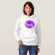 Planets hold a real fascination with a lot of us. This design is an interesting take on a planet. It is a purple planet that has a pink and blue squiggly stripe around the middle of it. It looks really effective. This purple planet design looks great on this womens hoodie. Perfect for yourself or as a gift