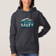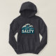 Giant whitecap waves roll toward the beach in this retro style coastal graphic. Cream vintage SALTY text makes a bold contrast against the teal blue ocean. Made for beach bums, surfers, sun seekers and anyone living on island time. This hoodie sweatshirt is a great way to add seaside vibes to your outfit. | Pro-Tip: For vibrant colors we recommend vivid printing for most apparel. For white apparel select classic printing.