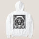 Cette image présente un design héraldique spectaculaire et détaillé. Au centre se trouve un crâne orné d'une couronne et de cornes, entouré d'un anneau d'épées, d'haches et de pistolets croisés. En dessous, deux lions héraldiques surveillent un tambour. Le design est rendu en noir et blanc, créant un contraste frappant par rapport à l'arrière - plan sombre