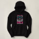 Sweat - shirt à capuche à thème de hockey pour la jeune fille de hockey avec des rondelles de hockey, des bâtons et des casques avec texte rose, blanc et bleu qui dit Sucre, épices et tout Ice C'est de quoi les filles de hockey sont faites!