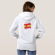 Ce vêtement de qualité a un graphique sur la face avant du drapeau espagnol avec les mots 'Viva la España' ci-dessous avec une place pour votre nom au-dessus. À l'arrière se trouve le drapeau espagnol avec "Viva la España" ci-dessous et un endroit pour votre nom au-dessus. Tous les mots peuvent être changés pour répondre à vos propres exigences sauf 'Viva la España' sur le devant qui fait partie du drapeau.