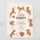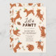 Carte d'invitation de fête d'anniversaire mignonne avec illustration dessinée à la main de chiots jouant avec des casquettes de fête. Travaille pour une fête d'anniversaire de fille ou de garçon. Le texte dit "Pawty".