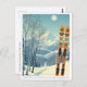Bonjour des montagnes enneigées de Purgatory Colorado Durango! Nous espérons que vous passerez de merveilleuses vacances à ski. Cette carte postale présente un magnifique paysage montagneux bleu-gris avec des planches de ski rétro dans un motif tribal orange. Toutes les phrases de texte peuvent être customisées pour vous convenir!