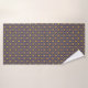 A set of bath towels with a seamless repeating purple and gold quatrefoil pattern with fleur de lys symbol (lilies).