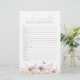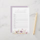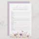 Emmenez le bébé avec ce charmant jeu de mots floraux qui fera vibrer vos invités baby showers ! Cet adorable bébé pourpre en fleur Fleur sauvage Word Scramble Game est une activité amusante et respirante garantie pour ravir vos invités baby showers. Les belles lignes violettes et fleurs sauvages apportent une touche sucrée à votre décor de baby shower fille. Les clients aimeront débrouiller les mots sur le thème du bébé ensemble et se lier à l'excitation de l'arrivée du nouveau bébé. C'est un moyen facile d'obtenir des êtres aimés qui se mêlent et rient ensemble à votre bébé dans une fête à thème fleurie !
