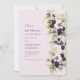 Célébrez un anniversaire spécial avec cette élégante conception d'invitation. Doté d'une belle aquarelle illustrant les mûres et les fleurs délicates dans les tons violet et blanc, ce design respire le raffinement et le charme. L'arrière - plan lilas doux crée une atmosphère calme et élégante, idéale pour une fête dans le jardin ou un rassemblement plus intime. Personnalisez-le avec le nom, l'âge, la date, l'heure et les détails de l'emplacement de la personne qui a donné naissance à l'enfant, afin de le rendre vraiment unique et mémorable. Cette invitation exquise vous impressionnera et donnera le ton d'une merveilleuse fête. C'est la façon idéale d'annoncer un anniversaire marquant dans le style.