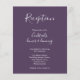 Le prospectus de la réception de mariage présente un design typographique élégant, moderne et propre, avec des couleurs violet foncé. Ce dépliant de réception vous permet de customiser avec les détails de votre journée spéciale.