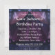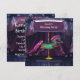 Beau poney carrousel rose violet et turquoise peint sur une invitation à la fête d'anniversaire de scène violet et bleu.