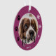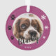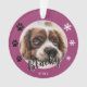 Nom du chien chiot mou pourpre Nom de la photo Garde de Noël Ornement. L'arrière - plan est violet avec des flocons blancs et des empreintes de pattes noirs. Personnalisez l'ornement avec la photo, le nom et l'année de naissance de votre chien. Vous pouvez utiliser cet ornement personnalisé pour n'importe quel animal de compagnie. Une belle tenue de vacances pour un propriétaire de chien.