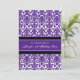 Personnalisé 40e anniversaire invitations à la fête dans l'élégant motif de damas floral noir et blanc en prune foncé violet. Ajoutez votre nom et vos coordonnées pour une invitation unique et élégante à la fête du 40e anniversaire.