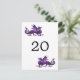 Parfait pour un élégant mariage à thème de jeu de table d'imaginaire est cette Mariage et unique Dragon Numéro de table Carte postale avec un dragon violet de couleur vibrante. Facile à customiser, il suffit d'ajouter le ou les numéros de table appropriés dans les champs de texte fournis. Cliquez sur "Customiser" pour trouver d'autres options de personnalisation.