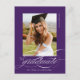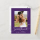 Purple Elegant Script Graduation Party Invitation Postcard dispose d'un magnifique et élégant script superposant votre photo, ainsi que les détails de votre fête et la photo au dos.