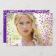 Annonces élégantes de graduation de confettis violet et or. Cette belle cordes de lumières et confetti violet et faire-part de graduation or est facilement customisé avec votre photo. Vous pouvez choisir le style de police et la couleur de votre choix, et déplacer la Classe de 2015 et confetti où vous avez besoin sur votre photo.