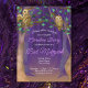 Forêt violette enchantée, chouettes de grange sage perchées dans les arbres verdoyants. L'invitation de style bat mitzvah de livre de Whimsical est polyvalente pour les thèmes violets, violets, boisés, sagesse, hibou, et la nature bat mitzvah. Cette invitation au hibou violet est aussi une idée unique pour un bat mitzvah jumeau !