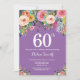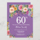 Purple Floral 60e anniversaire Invitation pour les femmes. Fleur florale aquarelle. Arrière - plan violet Lilac Lavender Violet. Rose, Jaune, Orange, Fleur Violette. Anniversaire adulte. 13ème 15ème 16ème 18ème 20ème 21ème 30ème 40ème 50ème 60ème 70ème 80ème 90ème 100ème, tout âge. Pour plus de personnalisation, cliquez sur le bouton "Customiser" et utilisez notre outil de conception pour modifier ce modèle.