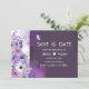 An elegant purple floral wedding save the date card featuring soft watercolor flowers in lavender, blush, and white, accented with delicate botanical line art and a graceful butterfly. The split layout with a deep plum panel creates a romantic and sophisticated look, making this card perfect for announcing your wedding date in style. A beautiful choice for garden weddings, spring weddings, summer celebrations, and coordinated floral wedding stationery suites.