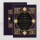 Modern stylish dark wedding card Purple with gold dust on with a gold ink pour effect (the gold is a digital effect, not real foil!) and modern calligraphy. Classy and elegant, simple and modern invitation.
